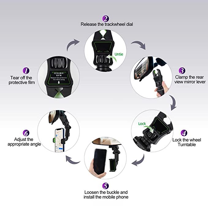 • Package includes: 1 x Multifunctional Rearview Mirror Phone Holder